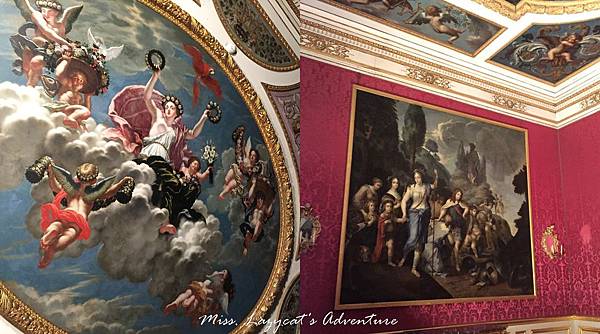 四面八方都是美到讓人窒息的裝飾及畫作,不想看都不行! 抬起頭,天花板也令人驚嘆!