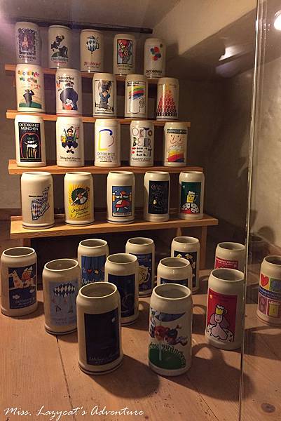 裡頭展示著啤酒節使用的海報、器具,還有許多不同的啤酒酒杯。