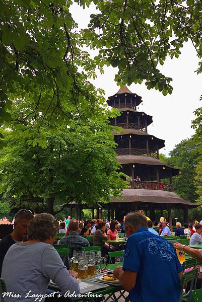 而花園裡有一座中國塔 Chinesischer Turm,為花園裡最著名的景觀~