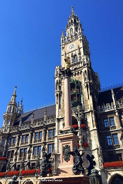 每次經過,總會看到許多遊客停下來,欣賞市政廳上方的鐘樓,聚集在旁邊,等著時間到鐘樓的音樂表演,這也是慕尼黑聞名遐邇的景點之一哦~